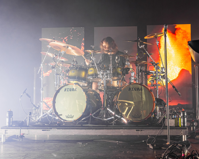 30 minutes into the set, we start to feel as though we're floating through the universe. The album's track "Parallax" is being performed and the video screens behind drummer Blake Richardson project stars and galaxies passing by. It's such a cool sounding track and the visual highlights intensify the feeling. But the gentle floating lasts only a minute as we're then thrust into "The Black Box".
