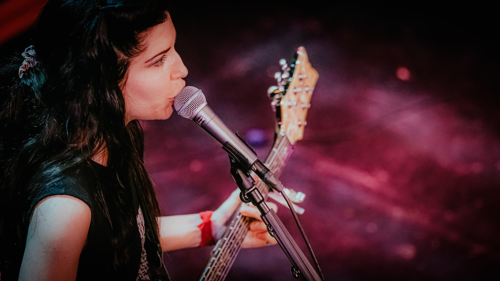 A cover of the Adele song "Rolling in the Deep" comes up next in the band's set. Rose Cora Perry does an amazing job vocally on this one. The track highlights the singer's vocal range beautifully, and is a wonderful transition from the opening song. While this event is to celebrate independent music, and musicians, it's also to showcase these artists talent. This selection by the band was spot on! At the end of the track, Perry jokingly says "Her and I are close. We're both from London, although she's from the better one." We get the comedy drum fill from the man behind the kit to which Perry adds "Sorry! That was my lame attempt at humour", which highlights another bonus in the frontwoman's repertoire.