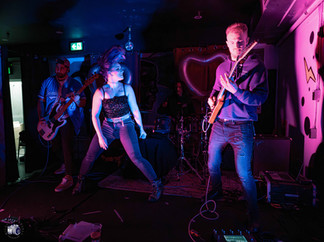 Next up, Lady Marge. A total 180 from DAPHNE’s set, Lady Marge brought a sound that filled the room with good ol’ fashioned rock and roll. Lead singer and guitarist Parker Merlihan looks far too young to carry that soulful voice. He showed his age though during an amazing cover of "Tennessee Whiskey" by Chris Stapleton when he admitted his mom, who was in the audience, gave him the lyrics after he mixed up a verse. The rest of the band were just as talented and delivered a set that had the fans rock’n the dancefloor. A perfect example of how the indie community is so tight was demonstrated when I noticed that Lady Marge’s guitarist, Sam “Pookie” Grant, was up on stage earlier with DAPHNE helping out.
